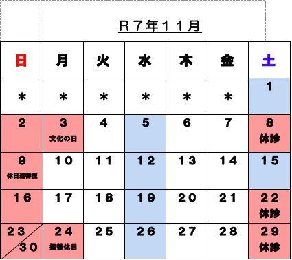 青塗りは、水曜日、土曜日午前のみ診療 第2、4、5土曜日は休診
